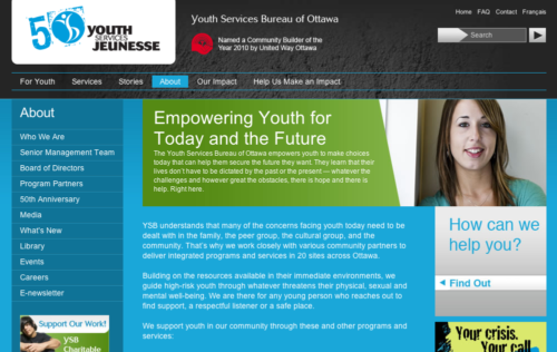 I love the look, feel and overall tone of the website. I like that it speaks to me, using "you" to make me feel heard. I like that the colours and curvy boxes are friendly and the images of the youth really speak to the target audience.